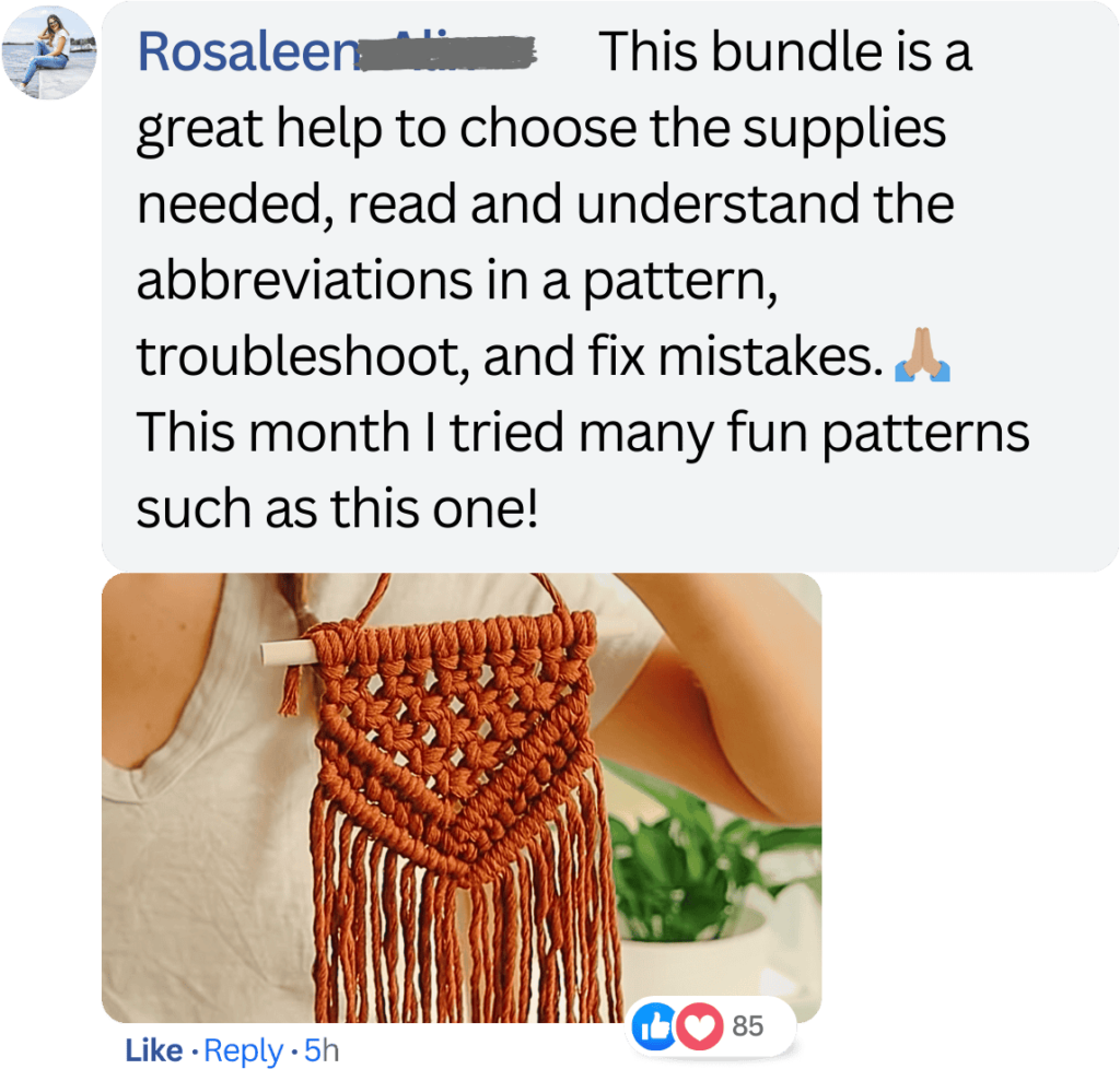 THIS BUNDLE ALLOWS YOU TO GROW AS A MACRAMER AND EVEN START SELLING YOUR OWN CREATIONS
