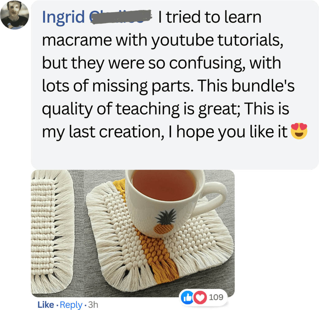 Youtube tutorials can help start doing Macrame, but they don’t follow a precise teaching method. The risk of failing is high because of the lack of basics. You could feel unnecessarily frustrated and not talented.