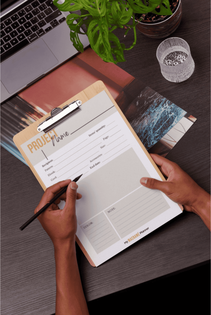 4 templates and a glossary with the most important macramé terms and abbreviations to print out to always stay organized: say goodbye to macramé chaos and keep track of your projects with dedicated pages.